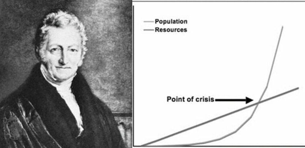 Kogu Galtoni, Huxley jt propageeritud eugeenika süsteem oli vaid Briti East Company staarökonomist Thomas Malthuse (1766–1834) populariseeritud rahvastikuteooriate aluseks olevate eelduste ümberpakendamine. Malthus propageeris matemaatilist teesi, et rahvastiku tase kaldub alati geomeetrilise kasvu suunas, samas kui põllumajandusressursid kalduvad aritmeetilisele kasvule, mille tulemuseks on suhteliselt prognoositavad “kriisipunktid”. Malthus ja tema jüngrid, keda tuntakse malthuslastena, uskusid, et Briti impeeriumi esindavad sotsiaalinsenerid peavad kasutama neid “kriisipunkte” “inimkarja” teaduslikuks juhtimiseks.
