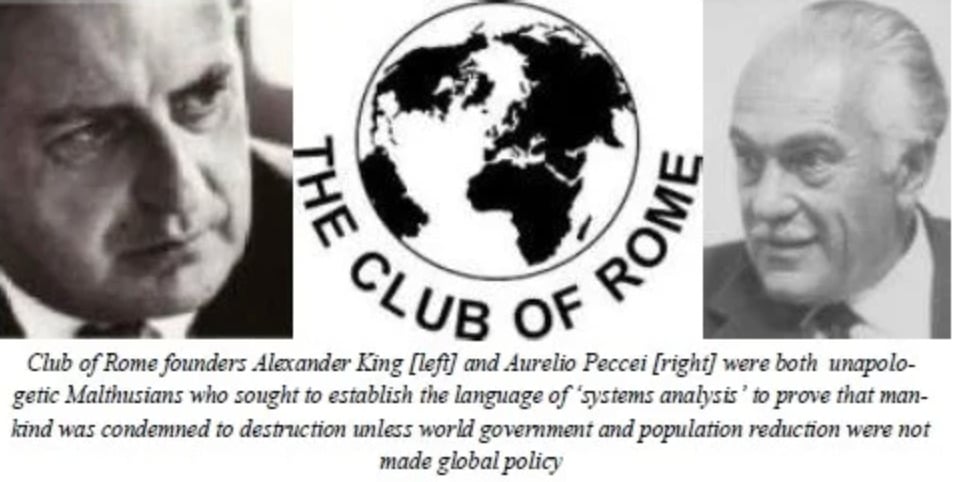Alexander King ja 1972. aasta majanduskasvu piirid kuulsaks saanud arvutimudel lõid uue lõhe inimkonna arenemissoovi ja looduse väidetava matemaatilises tasakaalus puhkamise soovi vahel. Seda neo-malthuslikku arvutimudelit kasutati selleks, et õigustada kõlbmatute ja ülerahvastatud kasutute sööjate tapmist ning see lisati hiljem Davosis toimunud kolmandale ametlikule Maailma Majandusfoorumi (WEF) kohtumisele, kus Klaus Schwab tutvustas Aurelio Pecceid ja tutvustas selle piire. Kasvumaagia tuhandetele toetavatele osalejatele.