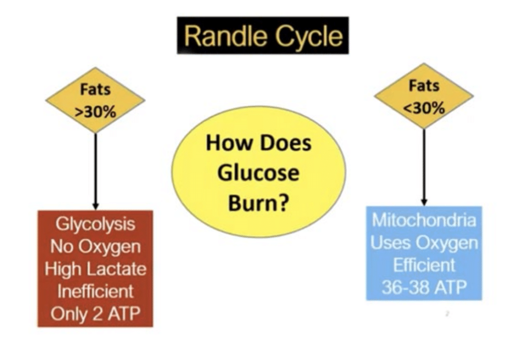 Kui rasvade tarbimine on üle 40% ja süsivesikute tarbimine on alla 200 grammi päevas, põleb glükoos raku tsütoplasmas glükolüüsi käigus, mis toodab laktaati, mis pärsib glükoosi oksüdatsiooni ja nihutab ainevahetuse selle asemel rasvade põletamisele.