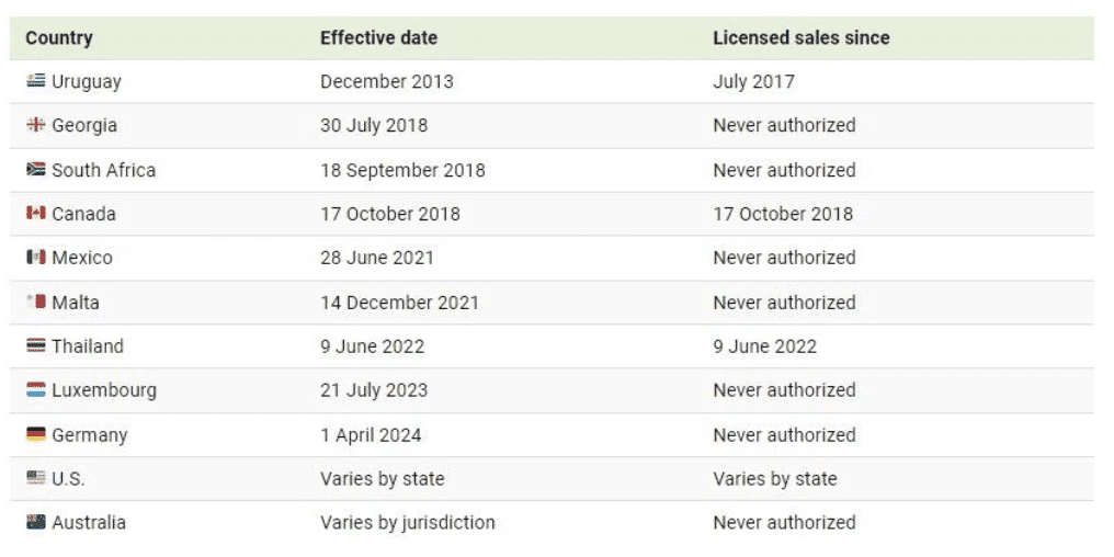 Kokku on kanepi meelelahutusliku kasutamise üleriigiliselt legaliseerinud vaid üheksa riiki. Kuid vaid mõnel neist on litsentseeritud müük.