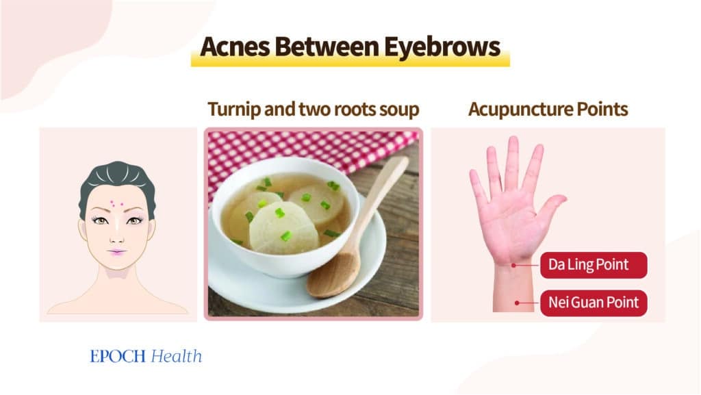 Seetõttu tuleks traditsioonilise hiina meditsiini seisukohalt keskenduda “südame jahutamisele”, et eemaldada akne otsmikul. Väga soovitatav on stressi leevendamine, unegraafiku kohandamine ja hüdreeritud püsimine.
