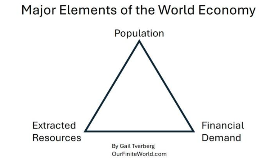 Maailmamajandus on hämmastavalt keeruline, füüsikal põhinev iseorganiseeruv süsteem. Kolm peamist elementi on kaevandatud ressursid, sealhulgas energiaressursid, elanikkond ja finantssüsteemi kaudu tulev nõudlus.