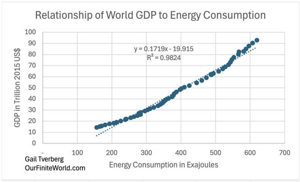 Sellel, miks energiatarbimine ja majanduskasv on omavahel seotud, on füüsikaline põhjus. Majandus vajab energiat sarnasel põhjusel, miks inimesed vajavad toitu.