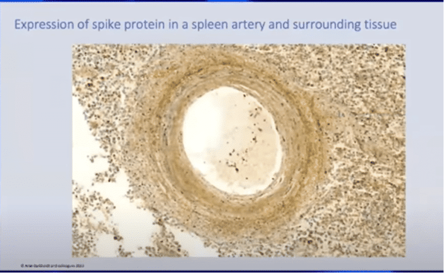 Paigutades värvitud koeproovid teatud valkude konkreetseks tuvastamiseks, on võimalik näha Covidi “vaktsiinide” poolt indutseeritud ogavalku. Sõltuvalt sellest, millist plekki kasutatakse on kehakoe proovides võimalik kindlaks teha, kas ogavalk tuli viirusest või oli see põhjustatud Covidi süstidest.