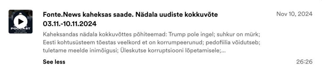 Fonte.News podcast kaheksas saade. Nädala uudiste kokkuvõte 03.11.-10.11.2024