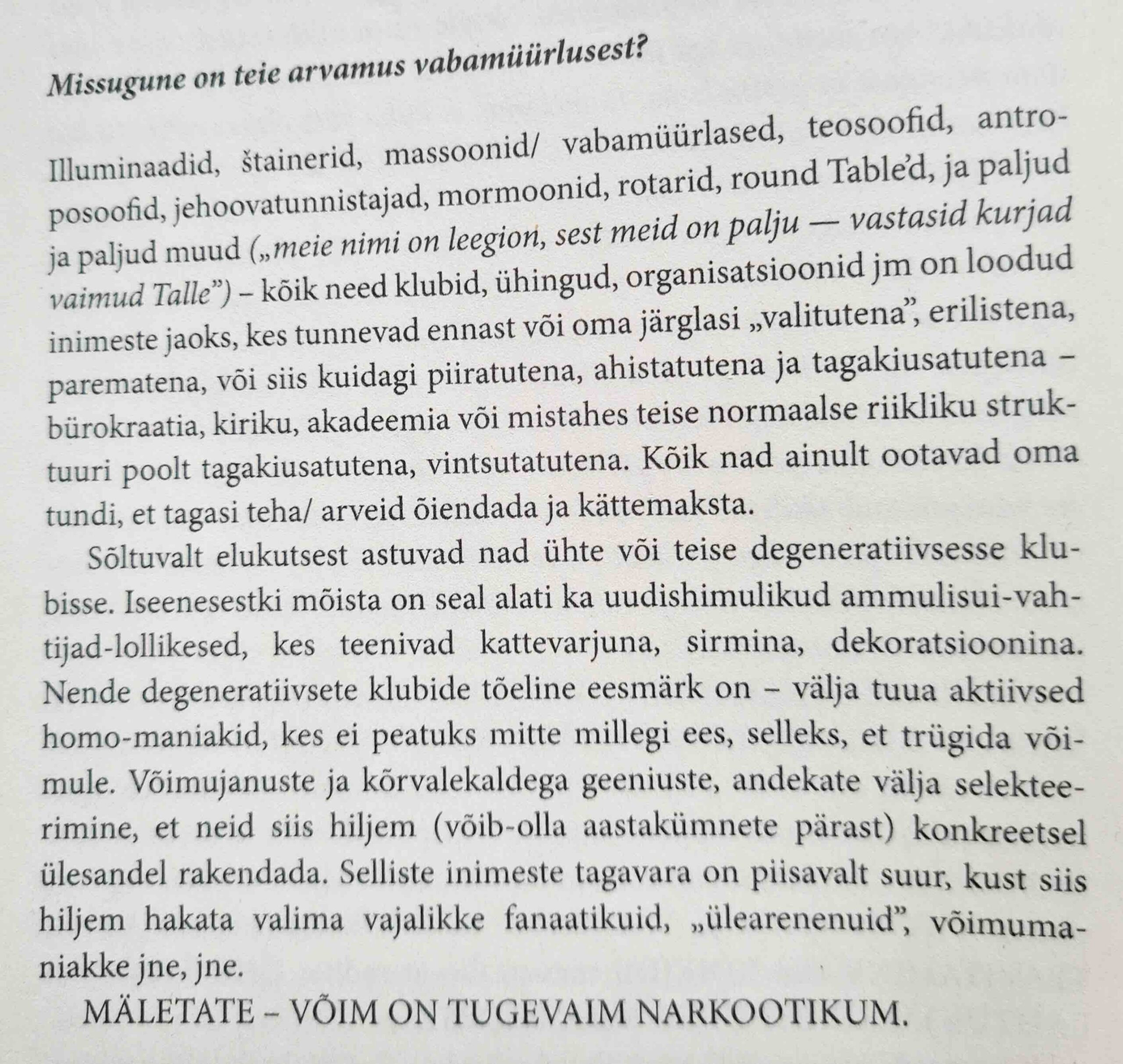 Degenerandid kuuluvad sektidesse ja klubidesse – Vabamüürlased, sionistid, rotarid, ….. (vt. pilti raamatust)