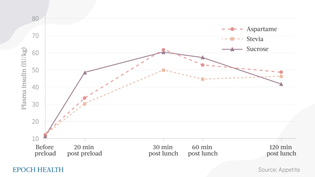 Lisaks oli pärast lõunasööki steviat tarbinud osalejate insuliinitase üldiselt madalam kui aspartaami või sahharoosi tarbinud osalejatel.