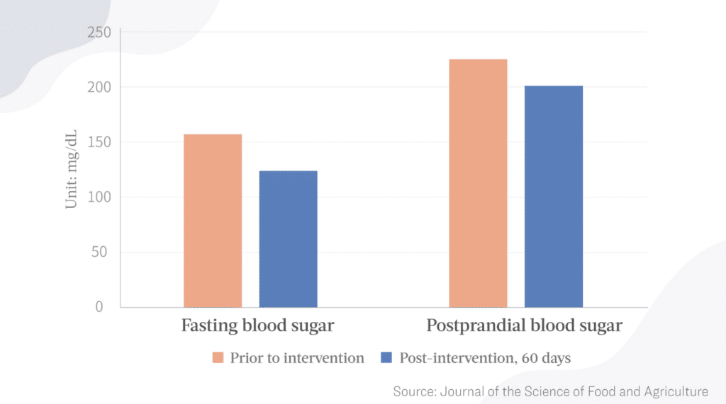 Tulemused näitasid, et kuivatatud stevia lehtede pulbri võtmine vähendas oluliselt nende diabeetikute veresuhkru taset tühja kõhuga ja pärast sööki.