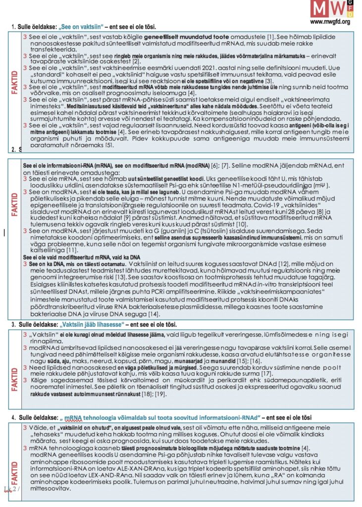 Tegelik tõde mRNA-põhise „vaktsiinitehnoloogia“ kohta, mis kuulutati välja artiklis ”modRNA – tõeline oht” (vt viide ja viide).