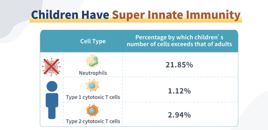 Ühest küljest on lastel rohkem kaasasündinud immuunrakke; teisest küljest on nende sisemised geenid aktiivsemad. Nii sisemiste kui ka väliste tegurite tõttu on lastel tugevam igakülgne võime võidelda viiruste sissetungi vastu.