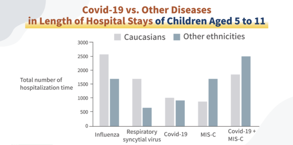 American Medical Associationi (JAMA) uuringus analüüsiti 5–11-aastaste laste hospitaliseerimist 11 USA osariigis 2021. aasta jaanuarist märtsini ning võrreldi andmeid samal perioodil gripi ja respiratoorse süntsütiaalviiruse tõttu haiglaravile sattunud laste andmetega aastast 2017.