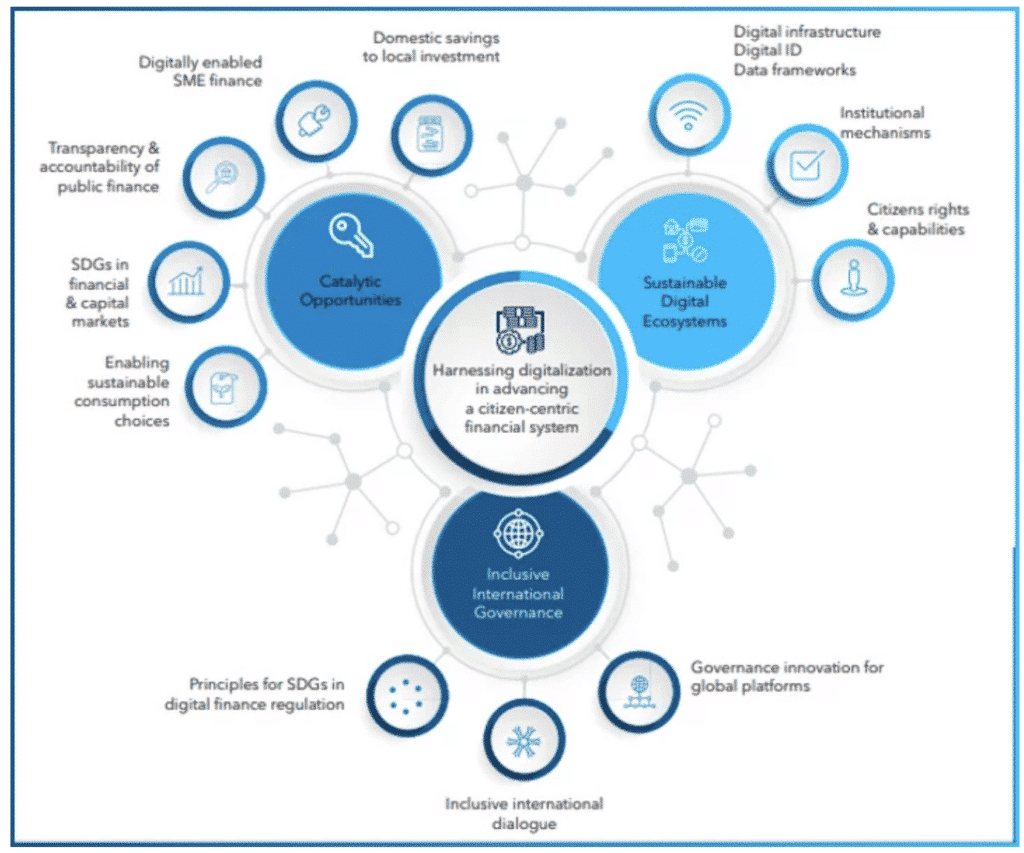 Eesmärk on eraldada “vajalikud vahendid riiklike ja ülemaailmsete eesmärkide rahastamiseks ja saavutamiseks”. See tähendab, et vähim arenenud riikide valitsustel on “lubatud” võtta vastu “digitaalse ümberkujundamise” poliitikat, mis on kooskõlas “globaalsete eesmärkidega”.