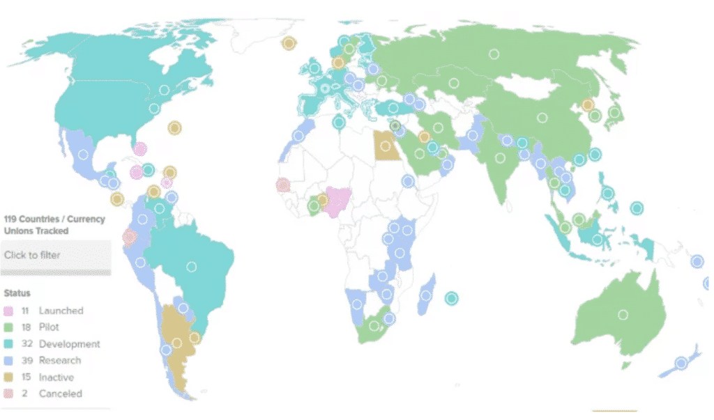 Kahetasandiline CBDC-süsteem, nagu ülaltoodud näide ja mida praegu kasutatakse mõnes suuremas Ameerika pangas, võimaldab “ühtsust valuuta” olenemata sellest, millist münti või märki inimesed kasutavad. KYC autentimist ja sisselülitamist saavad hallata privaatsed müntide ja žetoonide müüjad, näiteks Ühendkuningriigis PIP-id ja ESIP-id.