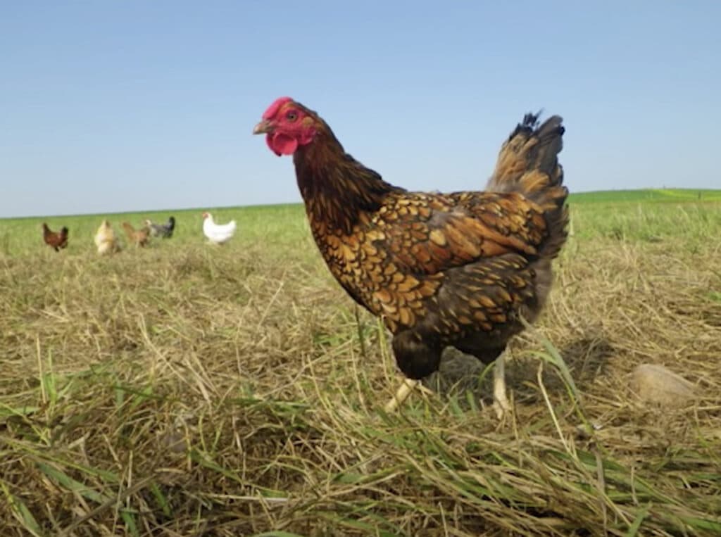 Viies: Loomade ja putukate mõju. Veised, sead, lambad, kanad kasvavad vabalt rohupõllumaal.